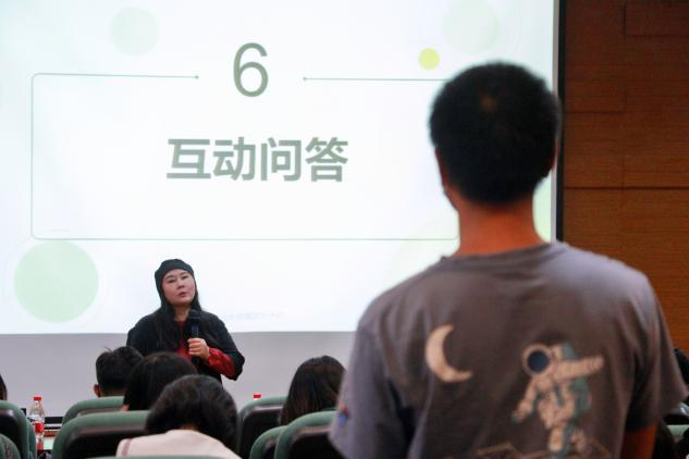图为张蜀梅老师在互动环节为同学解疑答惑