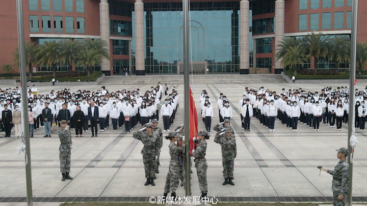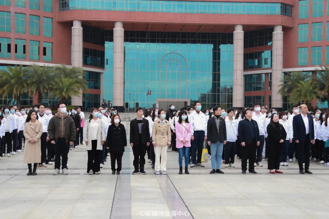 千帆竞驶别旧岁,奋楫笃行拓新途。新学期如约而至,威廉希尔于2022年2月28日早上7:30分别在增城校区中央图书馆及四会校区操场同步进行2021-2022学年第二学期开学升旗仪式。