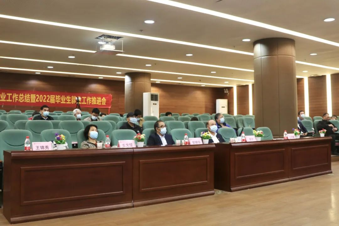 执行校长郭银华,校党委书记苏宁,副校长支戈壁、张捷、韩兆洲,各二级学院院长,各职能部门负责人,各二级学院学生工作负责人,2021届和2022届毕业班辅导员老师参加此次会议。副校长廖伊曼、各职能部门负责人、2021届和2022届毕业班辅导员老师在线上参加会议。会议由校长助理黄伟新主持。