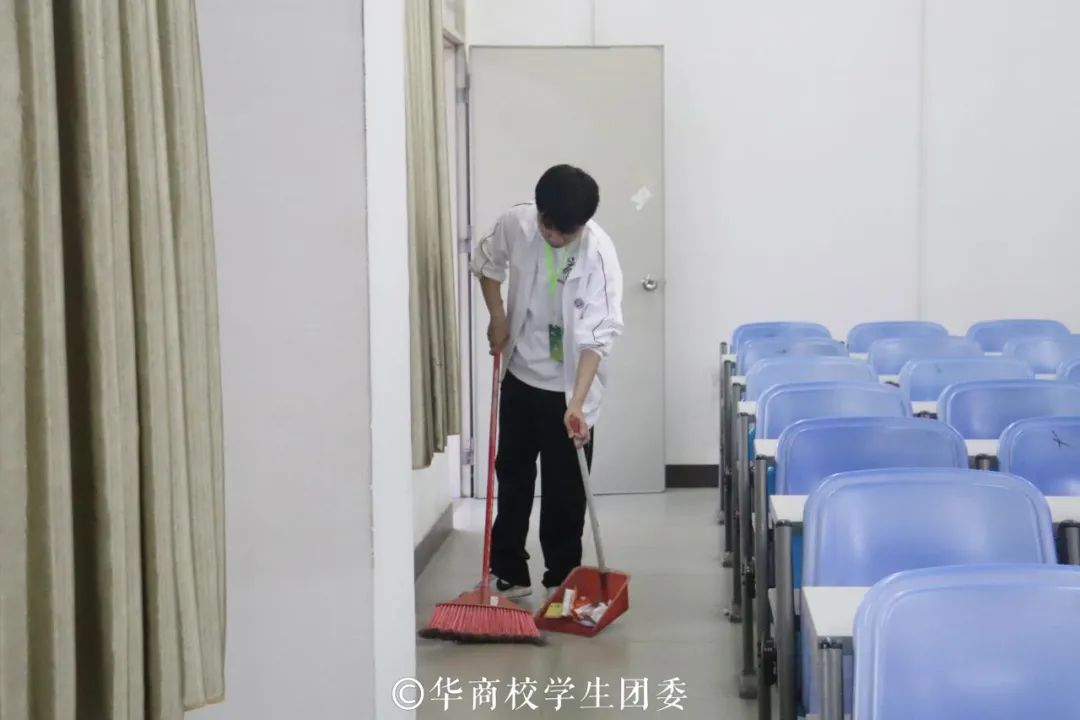在校学生团委工作人员的带领下,学员们准时有序到达华商学院教资考场。大家分工明确,团结合作。在指定的志愿活动区域,他们热情洋溢地开始了清洁活动,打扫每一个角落,清洁教室里的垃圾,仔细擦拭每间教室桌子上的污渍灰尘,并将垃圾用袋子装好扔到垃圾桶里。此次雷锋月活动让华商学子树立起自觉维护校园公共环境卫生的意识和“保护环境,爱护校园,从我做起”的理念,提升团结合作能力,增进彼此的友谊,更用自己的实际行动展现华商学子的精神面貌。