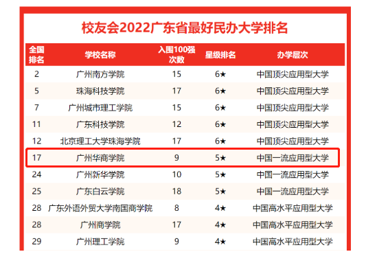 威廉希尔在此次《校友会2022广东省最好民办大学》中全国排名17,广东省位列第6。