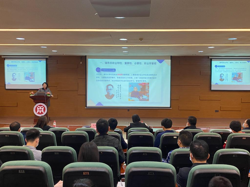 在培训会上,支戈壁副校长以“浅谈辅导员职业发展”为主题开展专题培训。从“辅导员职业特性”“辅导员的职称晋升之路”“辅导员培养培训”“学校日常管理相关规定”四个方面进行阐述。支校长从“辅导员的职业特性”出发,结合《普通高等学校辅导员队伍建设规定》,着重强调辅导员岗位的重要性和必要性。她表示,辅导员是开展大学生思想政治教育的骨干力量,是高等学校学生日常思政教育和管理工作的组织者、实施者、指导者,辅导员应当努力成为学生成长成才的人生导师和健康生活的知心朋友。
