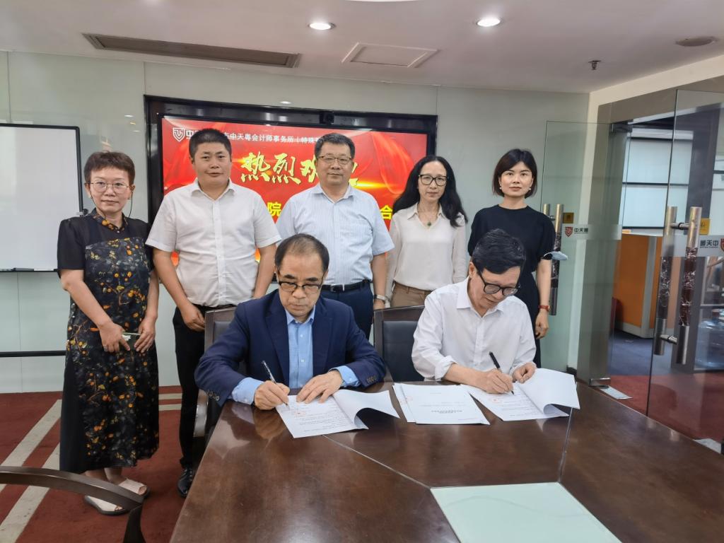 交流会结束后,郭银华执行校长与郭少元所长共同签署了广东中天粤会计师事务所(特殊普通合伙)、广东中天粤税务师事务所有限公司、广州市中和企业管理咨询有限公司、中天粤财审大数据技术(广州)有限公司四份校外实践教学基地合作协议书,并授予“威廉希尔实践教学基地”牌匾。