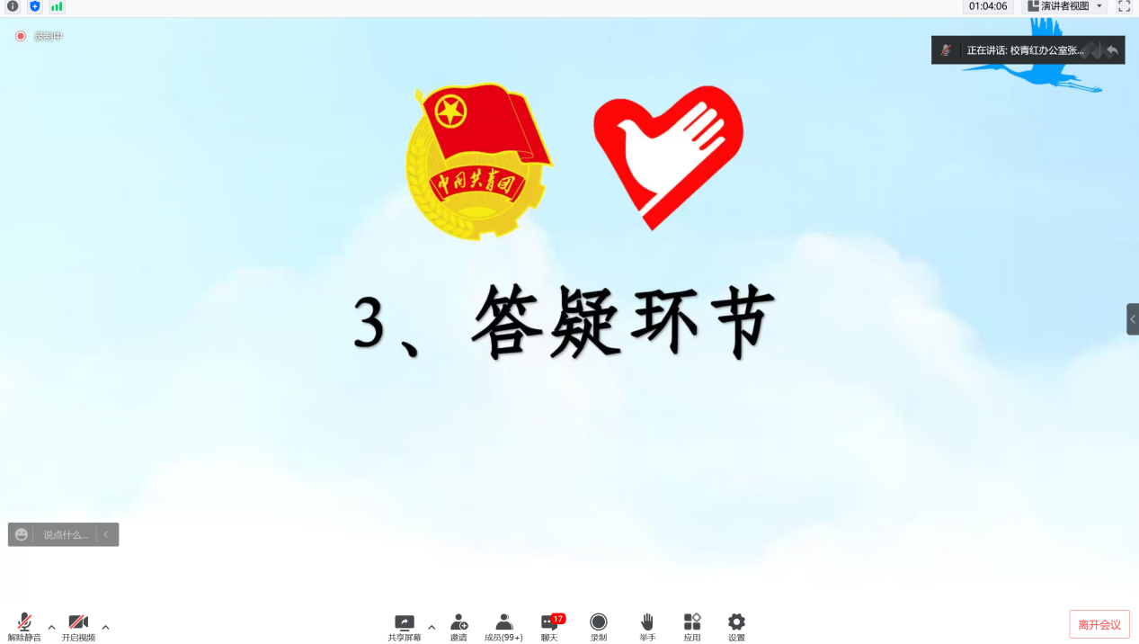 习近平总书记曾在全国高校思想政治工作会议上指出:“要鼓励高校学生把视线投向国家发展的航程,把汗水洒在艰苦创业的舞台,到基层去、到西部去、到祖国最需要的地方去,做成一番事业、做好一番事业”。为响应党和国家的号召,广泛动员威廉希尔2022届毕业生积极到祖国的西部、山区贡献青春力量。5月16日晚,威廉希尔团委在腾讯会议举办“2022年度‘振兴乡村,不负青春’西部(山区)计划”宣讲会。党委宣传部部长、校团委刘苗书记,团省委—志愿者行动指导中心倪晓奇老师,校团委陈巧巧老师,校团委杨图珍老师以及各学院学生代表近两百人收看了此次宣讲会。