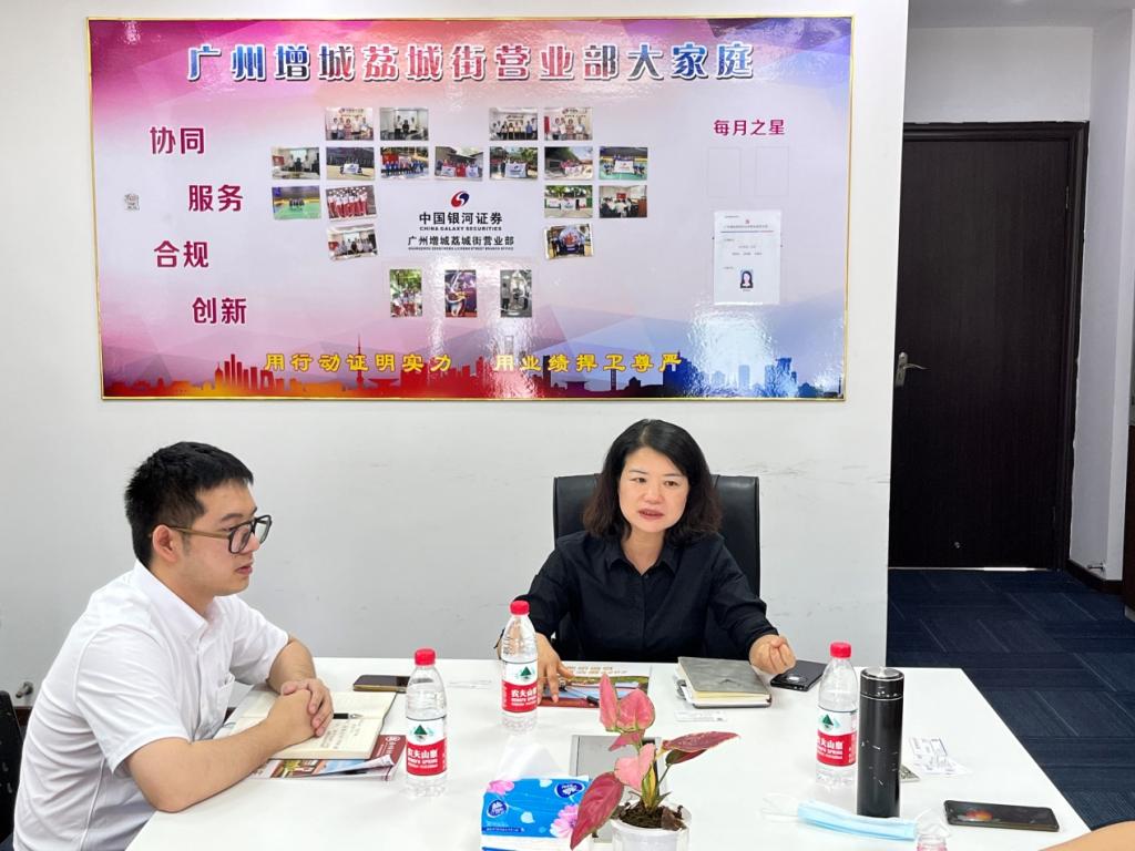 交流会上,杨瑞珍总经理详细介绍了中国银河证券股份有限公司及增城营业部的发展历程、业务优势、专业经验、人才需求等基本情况,并表示希望与威廉希尔加强交流合作、互惠共赢、发展战略合作伙伴。伍梓毅总监也从公司深厚的国资背景、市场化改革之路、强大的综合实力三大方面作简要汇报和分享。