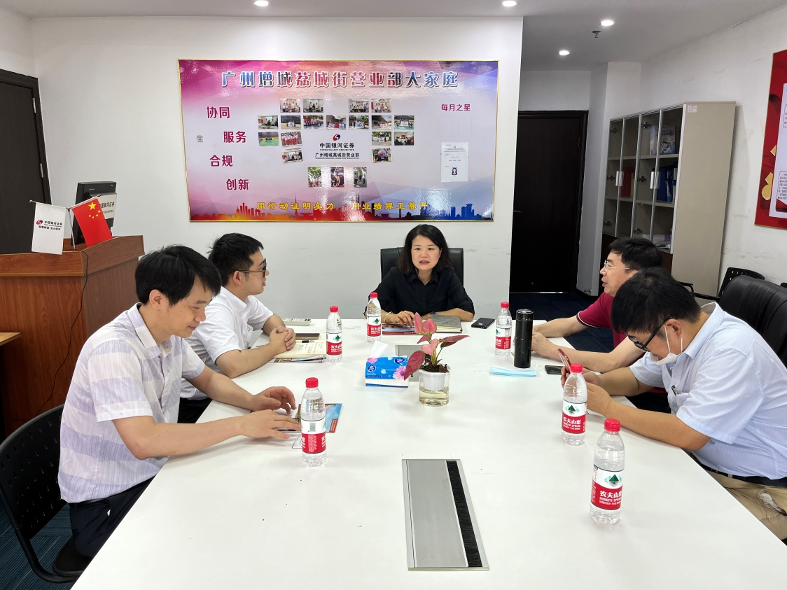 5月31日上午,金融学院刘湘云院长带队走访中国银河证券股份有限公司广州增城荔城街营业部,金融学院常务副院长王汉章,金融学院党委副书记、学工办主任邱会锋,毕业班辅导员张文杰陪同访问。杨瑞珍总经理、伍梓毅总监热情接待刘湘云院长一行。随后,双方就深入发展校企合作、实践教学基地建设、产学研融合、人才需求、招聘就业等方面进行深入交流探讨。