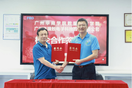 威廉希尔数据科学学院与广州飞瑞敖电子科技股份有限公司举行校企合作签约仪式,赖庆副院长与广州飞瑞敖总裁梅仲豪代表双方完成了签约仪式,双方在产教融合项目合作及“校外实践教学基地”建设等方面达成一致合作意见,共同期待能早日构建校企合作、人才共育、过程共管、责任共担的校企协同育人新格局。