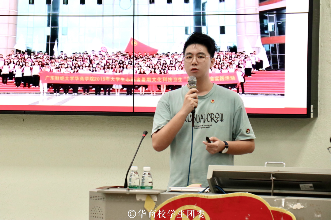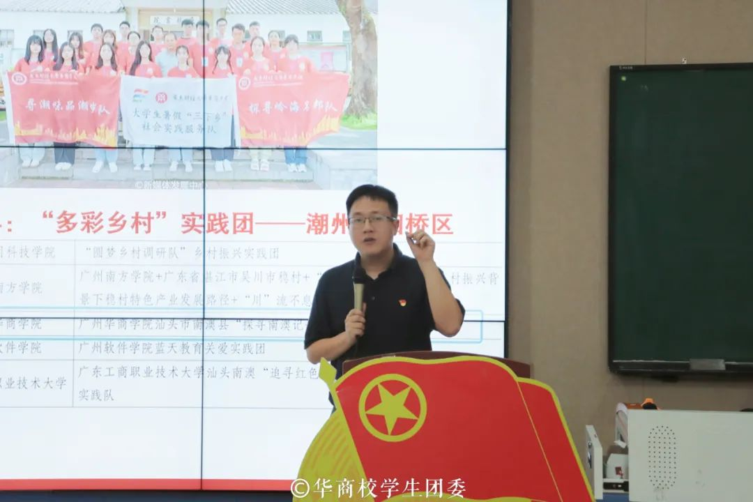校团委陈刚副书记从“为什么要三下乡”“三下乡要做什么”“怎么做好三下乡”三方面展开,他表示,一要深入基层,二要深入社会,三要深入群众。让理论联系实际,专业服务社会,发挥自己的专业知识与技能,致力于乡村振兴、义教等有意义的活动。前期要重视组队,包括队员的特长以及分工协作能力等,后期要做好总结与记录,留住美好回忆的同时认识到自己的足与不足之处。最后他寄语,希望同学们能够在青春的赛道上,跑出华商学子的青春风采。