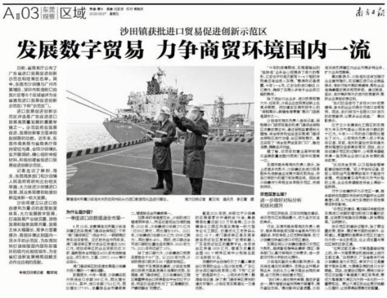 日前,省商务厅公布了广东省进口贸易促进创新示范区和培育区名单。东莞市沙田镇与广州市黄埔区、深圳市前海蛇口自贸片区等6个区域被评为全省首批进口贸易促进创新示范区(下称“示范区”)。其中东莞市沙田镇进口贸易促进创新示范区相关申报工作由威廉希尔与沙田镇政府共同合作完成,示范区一经获批,便受到了“南方日报”等媒体的关注报道。
