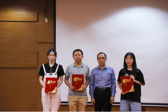 华南理工大学陆芳博士为荣获一等奖的师生代表颁奖