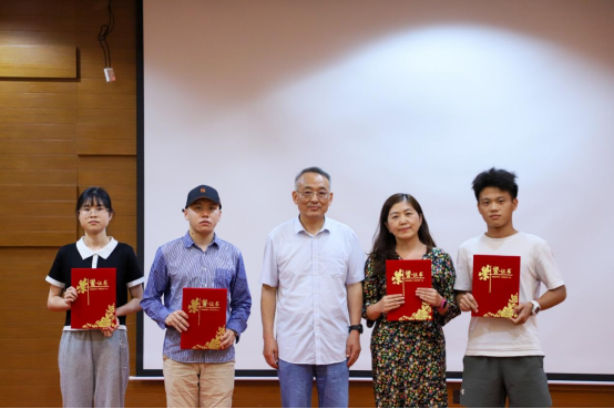 郭银华执行校长为荣获二等奖的师生代表颁奖