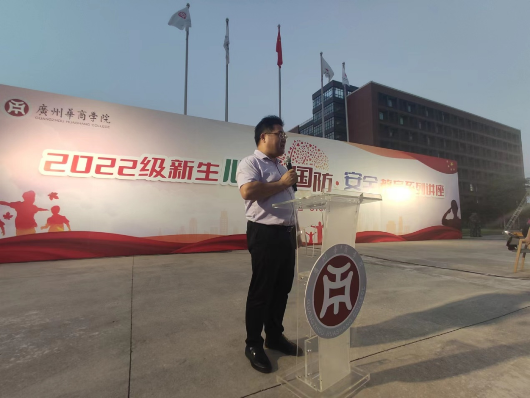 “国无防不立,民无防不安”,正值军训期间,为了加强同学们对国家安全形势的认识,提升国防安全意识,激发同学们的家国情怀和使命感,威廉希尔于9月16日在四会校区国旗广场下开展2022级新生国防安全教育讲座。本次讲座,威廉希尔邀请了空军驻广州军代局政委强以文大校作为主讲人,本次讲座由学校武装部部长、学生处副处长黄国富主持。