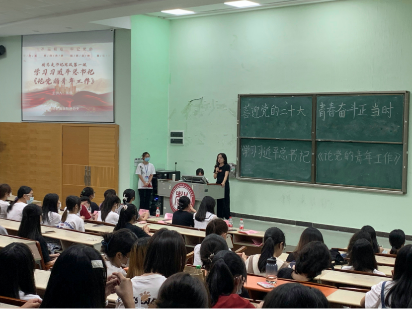 为深入学习贯彻习近平新时代中国特色社会主义思想,充分凝聚大学生团员青年力量,9月26日,文学院团总支组织学习习近平总书记《论党的青年工作》。本次团课由文学院团总支书记王怡荻、学生会指导老师陈梦洁主讲。团总支学生骨干、学生会主要成员以及部分学生代表参加了本次学习活动。通过学习,同学们纷纷表示要牢记习近平总书记的殷切嘱托,坚定不移听党话、跟党走,主动承担时代责任,脚踏实地成就一番事业。