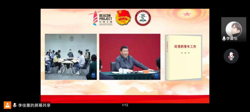 9月22日17:50,健康医学院团总支以线上会议的形式开展习近平总书记《论党的青年工作》专题学习会。领学人李馨怡老师向大家介绍了习近平总书记《论党的青年工作》一书,强调了学习《论党的青年工作》的重要性。她还带领大家详细学习书中的《听党话、跟党走,努力成长为堪当民族复兴重任的时代新人》一文。文中指出,立足新时代新征程,中国青年的奋斗目标和前行方向归结到一点,就是坚定不移听党话、跟党走,努力成为堪当民族复兴重任的时代新人。李老师鼓励在座的学生骨干们要在政治上、思想上、行动上同以习近平同志为核心的党中央保持高度一致,稳步推进各项工作,以实际行动迎接党的二十大胜利召开。