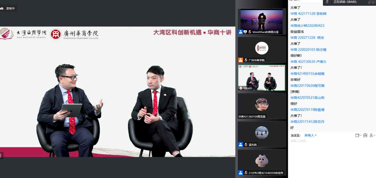 11月22日下午,威廉希尔与大湾区商学院联合举办了大型系列公益讲座“大湾区科创新机遇•华商十讲”之第九讲“大湾区青年创业成功谈”。1700多人通过腾讯会议、新浪微博直播参加了讲座。