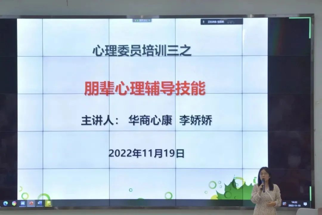 本次培训内容涉及三个主题,分别是心理委员的职责与定位、常见心理问题的识别及处理和学生朋辈心理辅导的技能。