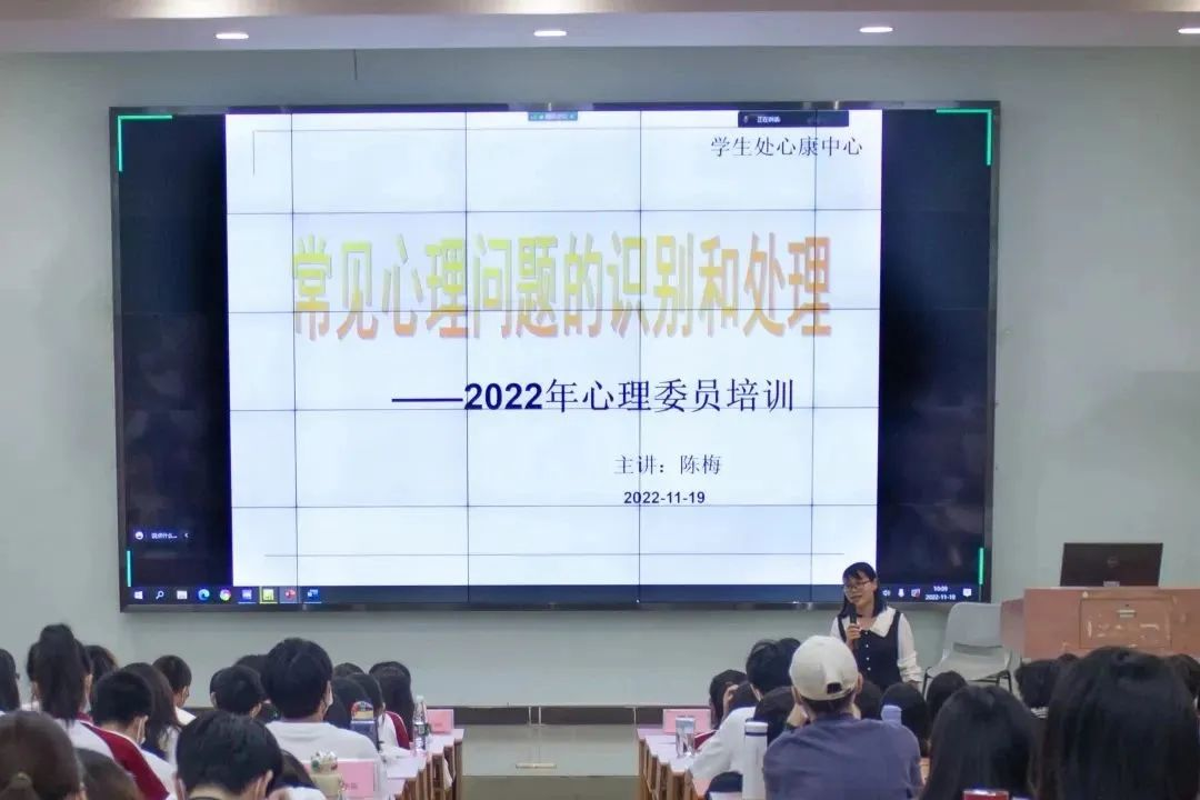 培训内容为常见心理问题的识别及处理,培训中讲述了生活中常见的心理问题和如何通过三看三比识别正常与异常的心理,从而使心理委员在日常工作中能够更好地帮助同学去解决心理健康问题。