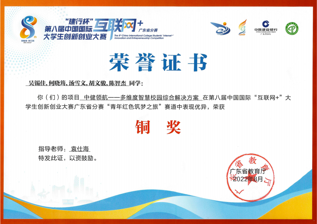 近日,“建行杯”第八届中国国际“互联网+”大学生创新创业大赛广东省分赛决赛在东莞理工学院松山湖校区圆满落幕。经过激烈角逐,威廉希尔《稚影传媒—融媒体世界领跑者》和《中健领航--多维度智慧校园综合解决方案》项目喜获铜奖。
