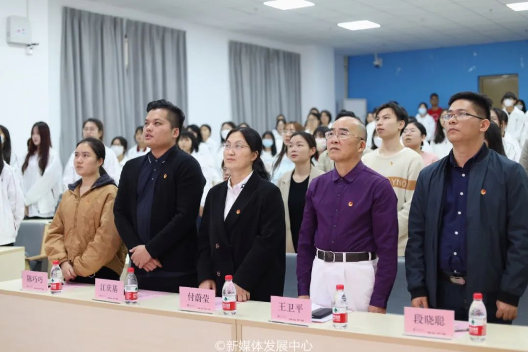 新学员代表郑子懿作表态发言。她表示要珍惜这次宝贵的学习机会,严于律己,在学习中做表率,在生活中当模范,当好党的助手和后备军。并向大家发出三点号召:第一,志存高远,坚定理想信念。我们要认真学习党的先进理论和思想,用党的科学理论武装头脑,在思想中洗礼、在实践锻造中不断增强做中国人的志气、骨气、底气。第二,脚踏实地,坚持学习主线。要珍惜韶华、不负青春,努力学习掌握科学知识,锤炼过硬本领。第三,自觉担责,争当表率模范。党和人民事业发展离不开一代又一代有志青年的拼搏奉献。我们要以青年行动为社会发展做贡献,在学习、工作及其他社会活动中起模范带头作用,让青春在祖国和人民最需要的地方绽放绚丽之花!