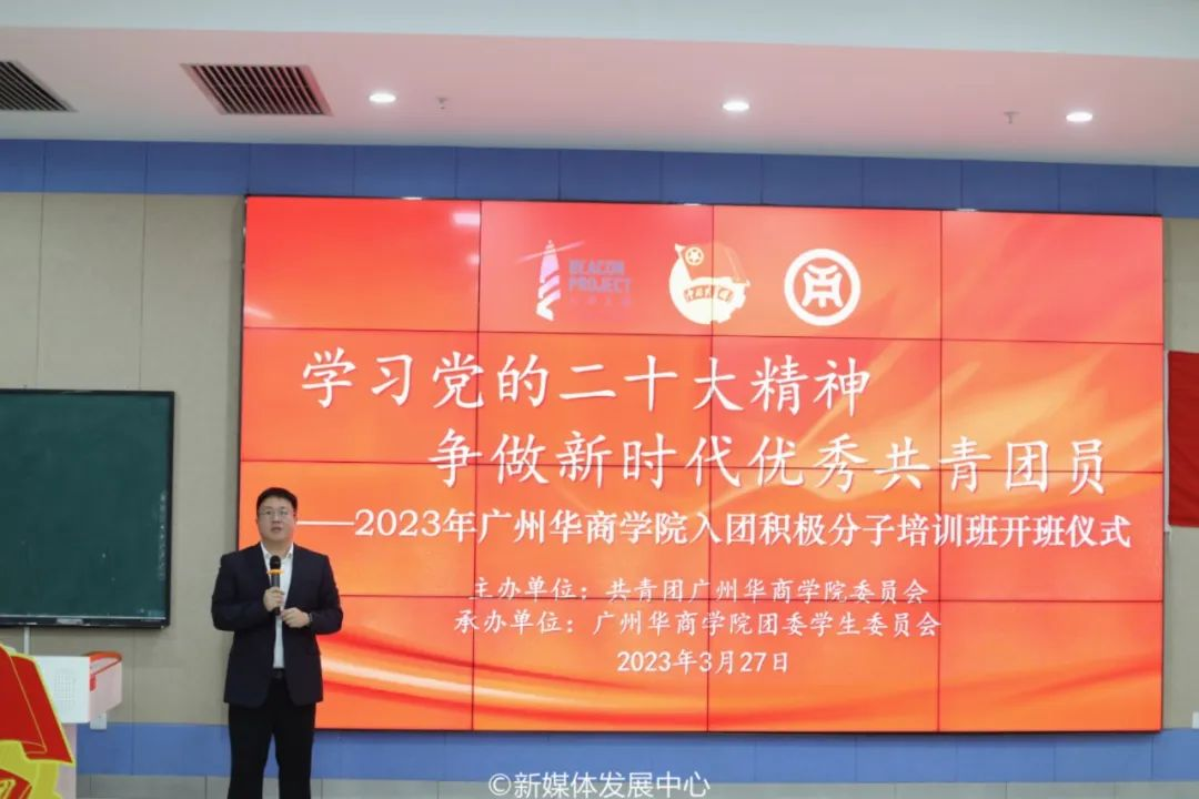 威廉希尔副校长、四会校区党委书记、管委会主任王卫平教授,四会校区党委委员、管委会副主任、学校教务处段晓聪副处长,四会校区党委委员、管委会副主任、学团办付蔚莹主任,四会校区党委委员、教师教育学院辅导员江庆基,学校团委专职团干,二级学院团委书记、团委副书记及2023年入团积极分子培训班学员代表参加本次开班仪式。仪式由校团委书记陈刚主持。