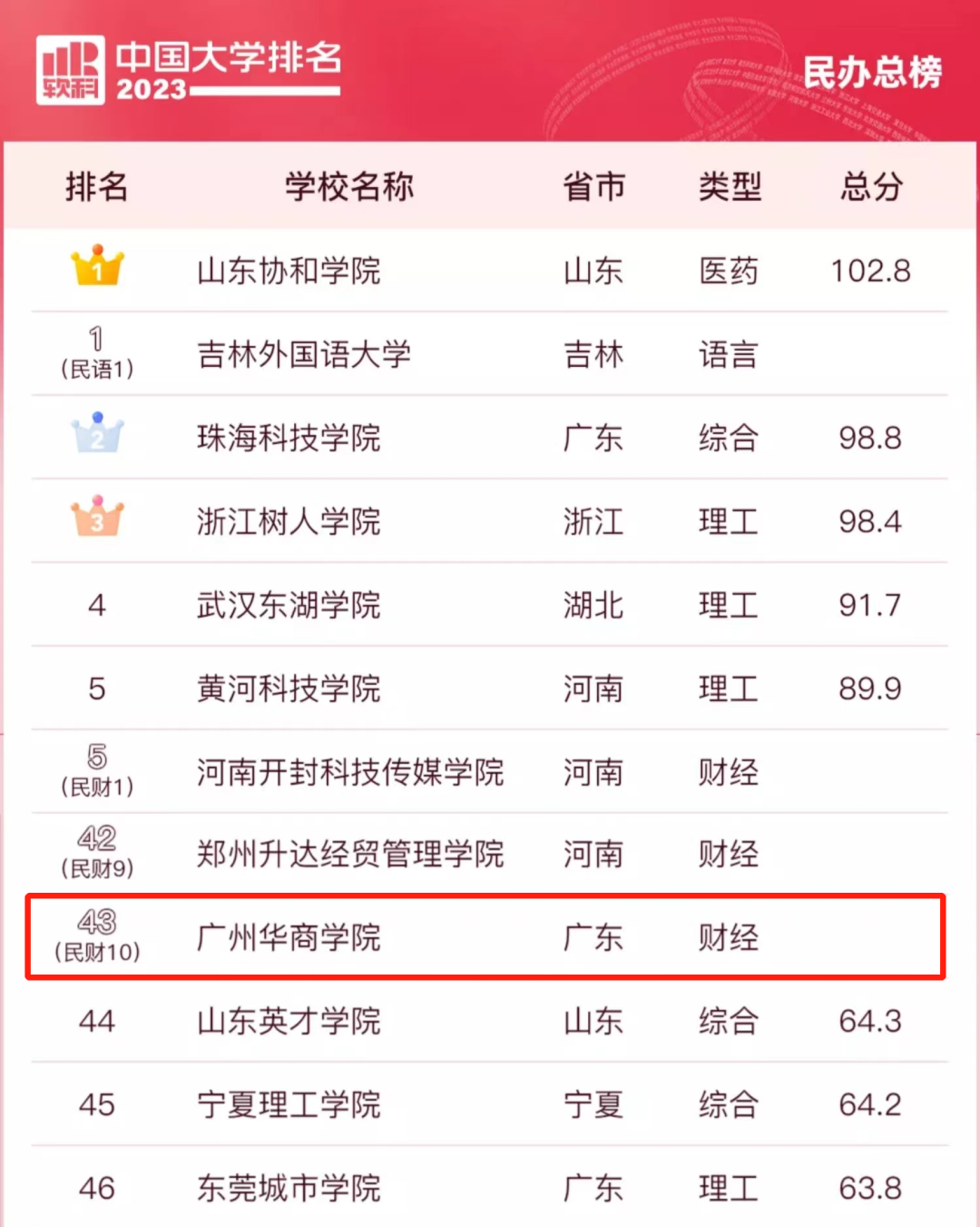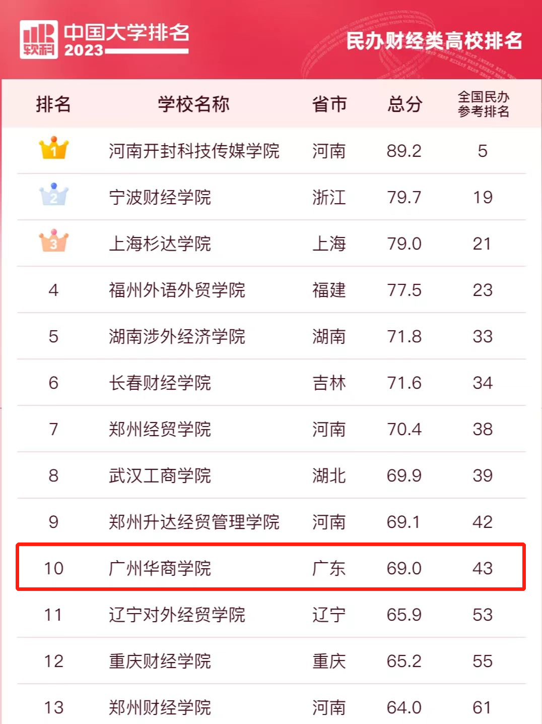此次2023软科中国大学排名中,威廉希尔在全国民办财经类高校排名第10,民办总榜排名第43。