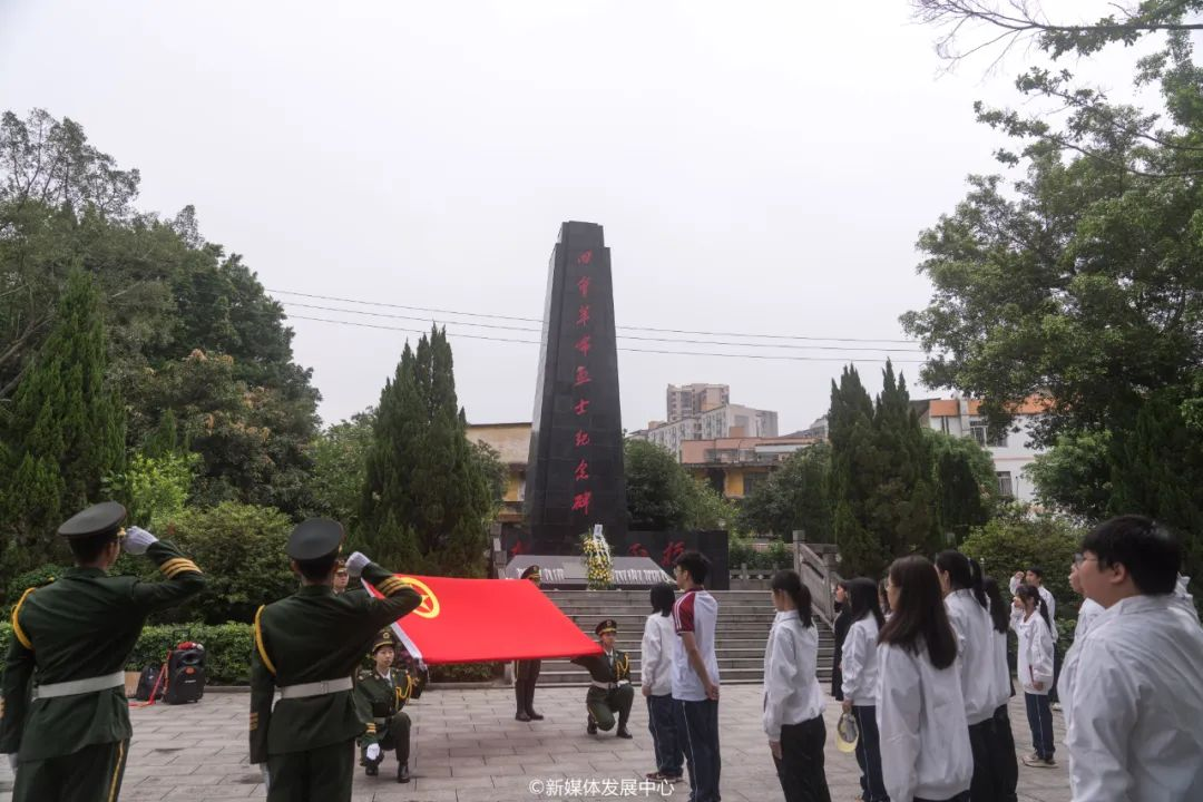 4月9日上午,在校团委陈巧巧老师的带领下,师生代表一行来到四会槎山公园烈士陵园,开展革命先烈祭祀活动,深切缅怀革命先烈丰功伟绩。陈巧巧老师带领师生们瞻仰革命烈士纪念碑,向革命先烈敬献鲜花以及重温入团誓词。师生们绕人民英雄纪念碑一周,向先烈们表示敬意,悼念英灵,寄托哀思。