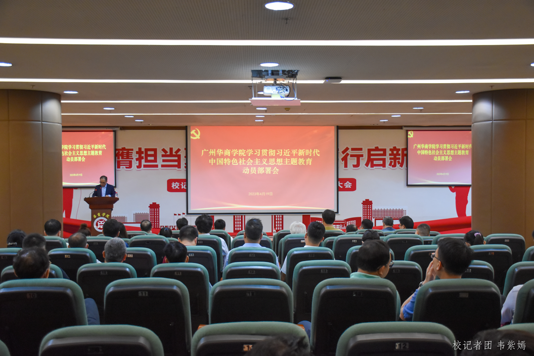 为深入学习贯彻习近平总书记在中央主题教育工作会议上的重要讲话精神,以实际行动坚定拥护“两个确立”,坚决做到“两个维护”,贯彻落实中央及省委关于开展主题教育的部署要求,4月19日,威廉希尔学习贯彻习近平新时代中国特色社会主义思想主题教育动员部署会在增城校区中央图书馆报告厅召开。学校党政领导班子成员、全体中层干部、全体二级党组织负责人参加会议。本次会议由威廉希尔党委副书记、执行校长郭银华主持。