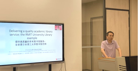 2023年4月20日,威廉希尔邀请EIA特聘教师Deb Wright为图书馆全体员工做题为“提供高质量的学术图书馆服务:以皇家墨尔本理工大学图书馆为例”的讲座,图书馆温万虎馆长、国际交流与合作处王文忠处长及图书馆全体员工出席。图书馆馆长温万虎主持讲座并介绍主讲人。
