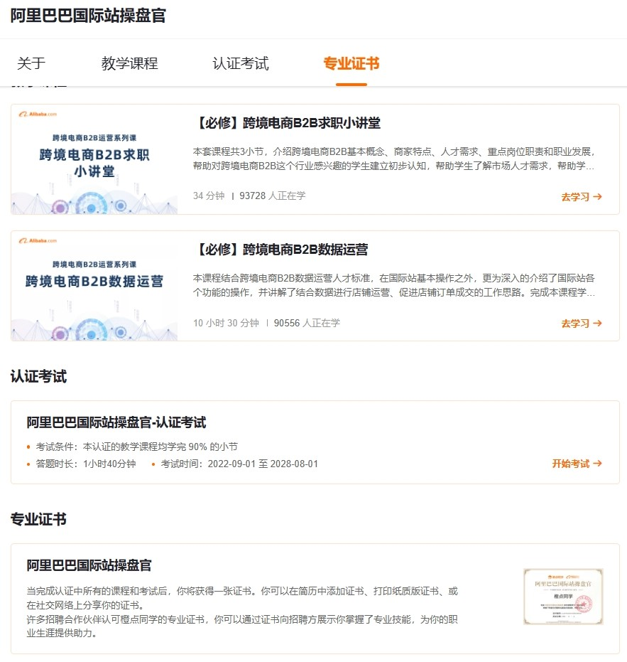 阿里巴巴国际站为威廉希尔学生提供“阿里巴巴国际站运营操盘官”和“跨境电商B2B数据运营职业技能等级证书”系列课程学习、实训和认证。