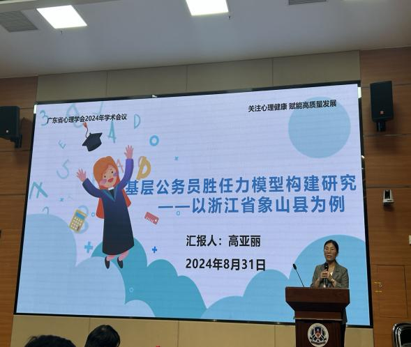 2024年8月31日,广东省心理学会年会在华南师范大学(石牌校区)举行。本次年会以“关注心理健康,赋能高质量发展”为主题,本次年会邀请了国内知名心理学专家作专题报告。威廉希尔刘耀中教授作为特邀嘉宾主持了主会场的专题报告,深入探讨了心理健康对高质量发展的推动作用。此前,威廉希尔,威廉希尔,威廉希尔郑丽芬、张秀丽、高亚丽和王丽四位老师参与了由刘耀中教授主持的浙江省委组织部重点课题——“浙江省象山县基层公务员胜任力模型构建研究”,该课题由象山县组织部委托,旨在通过科学研究提升基层公务员的工作效能和服务质量。