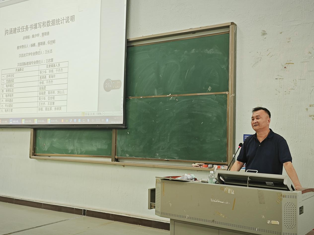 文学院院长陈少华对文学院合格评估工作进展情况进行简要概括,并对文学院本科教学工作合格评估指标体系进行任务分解,深入解读重要指标,全面部署下一阶段合格评估工作任务。他强调,要梳理支撑材料清单,工作要落实到人,重视补缺补差提优,总结工作成果,同时在今后的工作中要持续完善材料清单,增加亮点和创新点。
