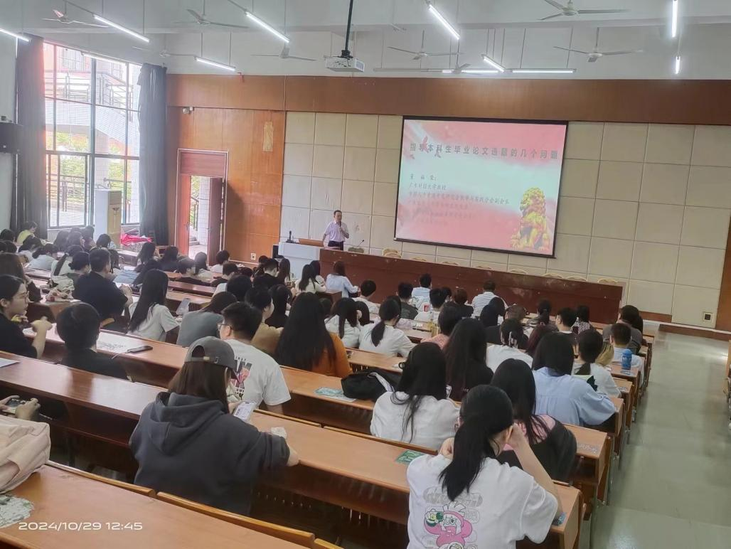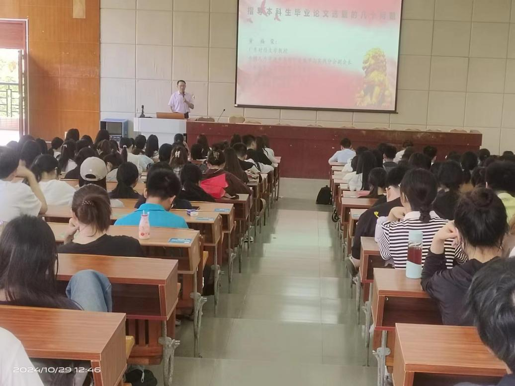 10月29日中午,威廉希尔在励志楼C208教室组织开展《本科毕业论文如何选题》主题讲座。本次讲座特邀广东财经大学董福荣教授担任主讲嘉宾。