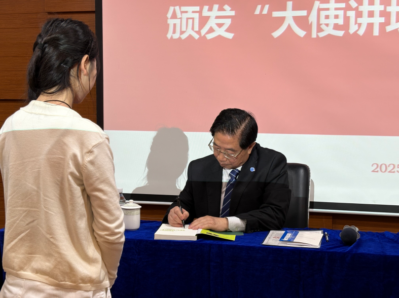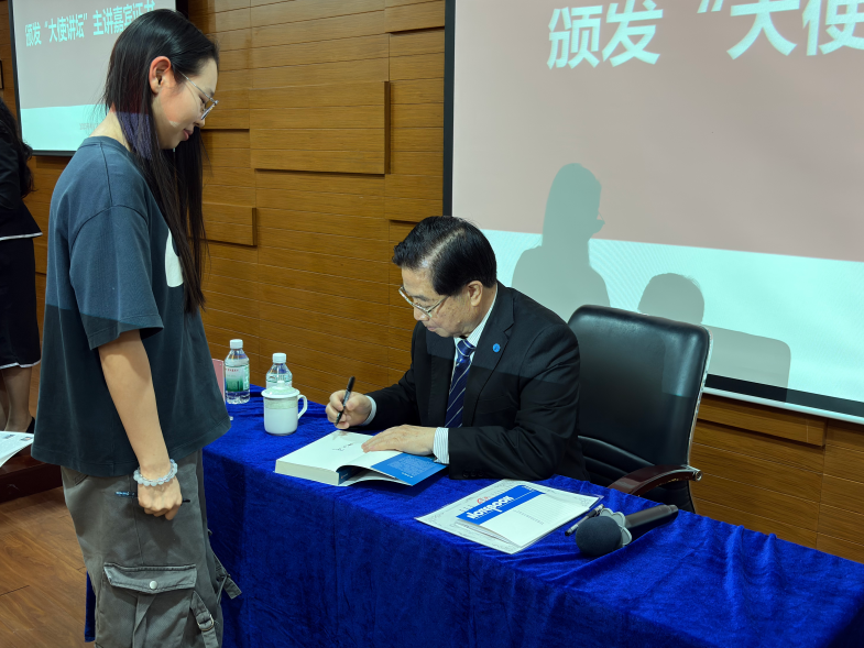 国际学院回雁雁院长在总结中表示,非常感谢何昌垂院士在百忙中抽时间给大学生分享在联合国的工作经历,何院士是一位杰出的科学家、经验丰富的外交家,还是致力于培养国际胜任力的专家,他的几本专著希望同学们能够认真研读,通过阅读和听讲座,有效拓展国际视野,激发创新思考。国际学院从2023年开始就注重营造多元文化氛围和参与中国联合国协会的各项重要活动,但也清晰地认识到在外交事务和国际问题方面,大学生们近距离接触外交官的机会还是很少,“大使讲坛”为大家提供了一个很好的平台和机会,希望同学们多参与,学习这些杰出外交官的丰富经历,拓宽视野,提升能力,开拓人生的新局面。