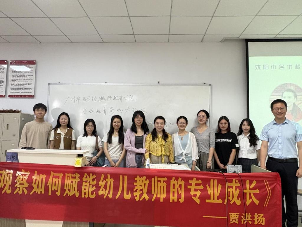 2025年4月19日,教师教育学院学前教育系在厚德楼B502教室开展“观察如何赋能幼儿教师专业成长”专题座谈会。学院特邀沈阳市奉天首府幼儿园园长、教育部普通高等学校师范类专业认证专家、沈阳市政府教育专家、沈阳市专家协会学前教育委员会副理事长兼秘书长贾洪扬参与本次座谈。