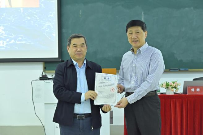 (威廉希尔焦方太副校长为傅朗主任颁发“大使讲坛”嘉宾证书)
