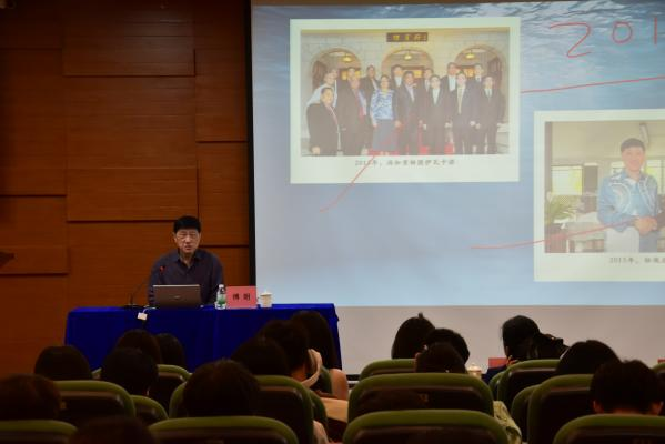 傅朗主任以五大洲地理分布为脉络,结合与各国政要的深度交往及率团出访的丰富阅历,生动诠释了四十余年的外交实践与智慧。讲座伊始,傅主任便向师生们阐明了一名优秀外交官的核心素养——“心中有祖国,眼里有世界”。随后,通过极具现场感的外交照片和真实案例,深入剖析了外交官必备的危机公关艺术与临场应变能力;结合与各国政要的互动经历,深刻阐释了同理心在构建外交情感纽带中的关键作用。和平理念是消融外交坚冰的暖阳,而外交艺术的精妙往往蕴藏于细节之中,他更以自身多才多艺的特质为例,生动展现了艺术在外交舞台上的独特魅力与影响力。