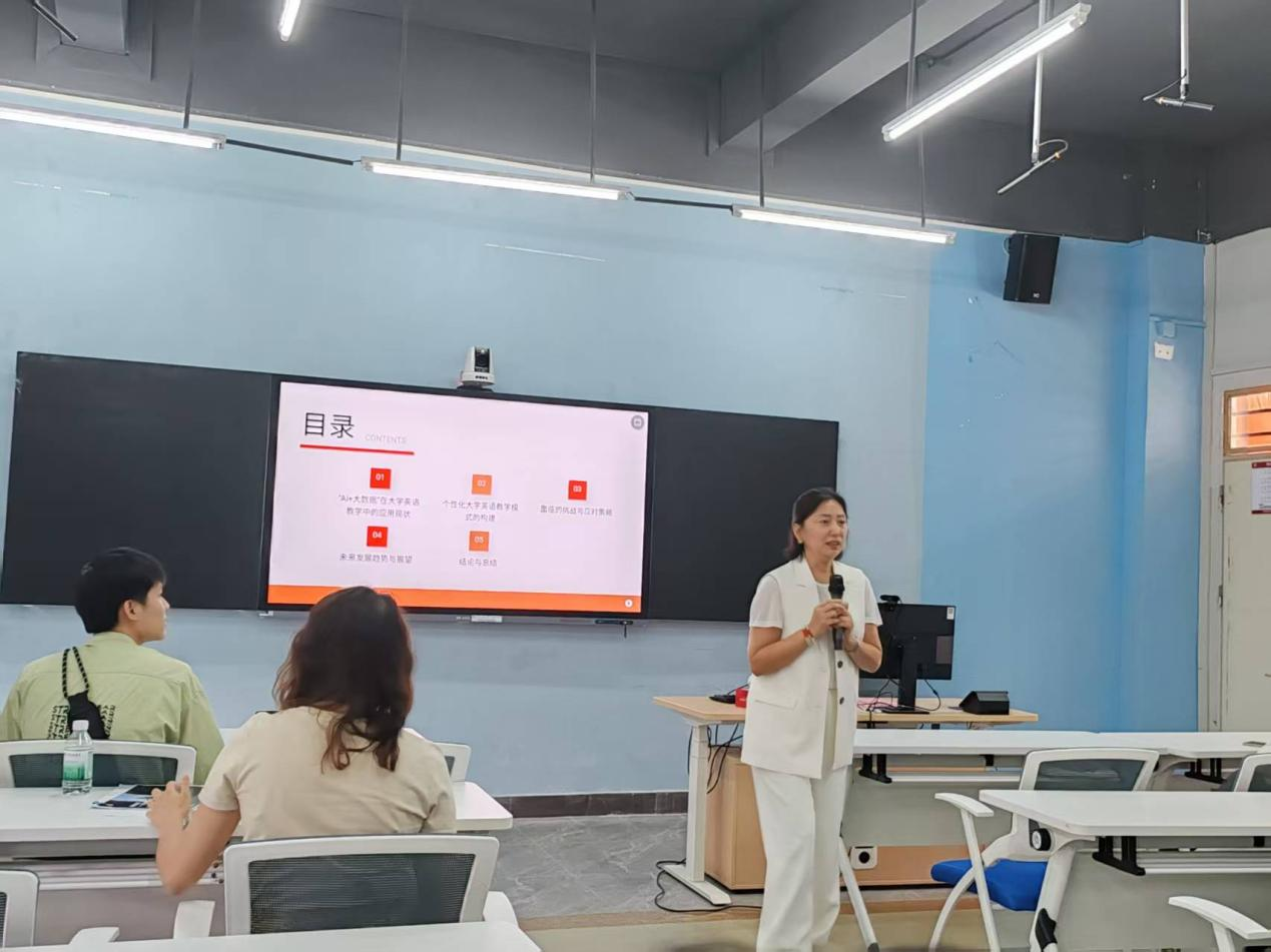 专题培训后,大学英语部贺学贵主任和刘莉副主任带领教师们对“AI+大数据”驱动的个性化大学英语教学模式展开了深入探讨。在讨论中,教师们围绕AI和大数据在大学英语教学中的应用现状、面临的挑战以及个性化大学英语教学模式的构建等关键问题进行了热烈交流讨论。探索教学新模式,把握未来趋势是大学英语教学与时俱进的需求。教师们表示,随着AI和大数据技术的不断成熟,大学英语教学将更加智能化、个性化和多元化。教师应积极拥抱新技术,持续深入探索创新性的教学方法,以充分满足学生多元化的学习需求,进而培养具有国际视野和跨文化交流能力的高素质专业人才。