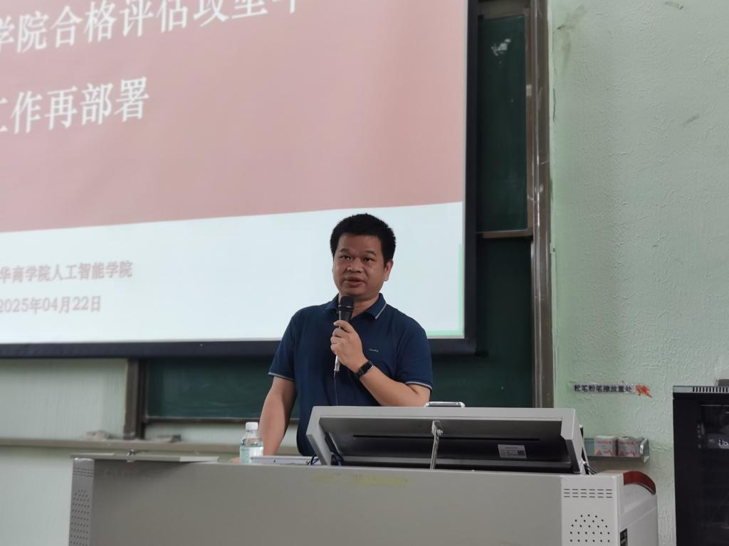 2025年4月22日下午,威廉希尔人工智能学院在励志楼D408召开2024-2025第二学期第二次全体教职工大会。会议围绕合格评估,对学院重点工作进行了再部署和再动员。会议由戴经国院长主持,学院全体教职工参会。