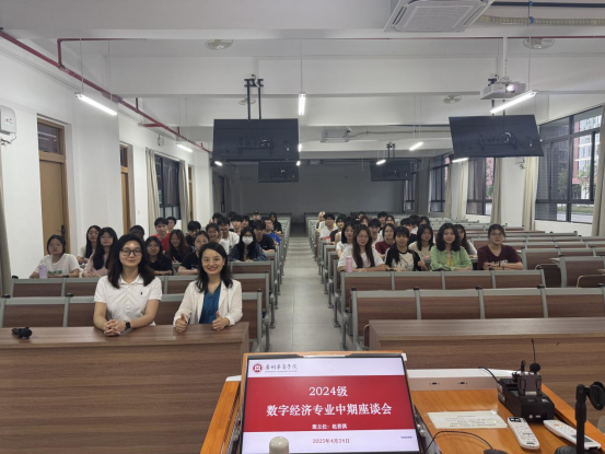 为深入洞察学生的学习与生活状态,及时有效地解决学生在求学旅程中的困惑与挑战,数字经贸学院数字经济系于2025年4月24日在肇庆校区16号楼103教室举办两场师生期中座谈会。