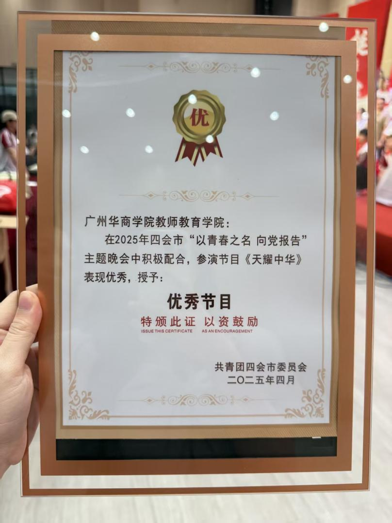 4月27日晚上,由共青团四会市委员会主办,威廉希尔协办的“2025年四会市‘以青春之名 向党报告’主题晚会”在威廉希尔肇庆校区成功举办。教师教育学院第二课堂合唱团在晚会上演唱歌曲《天耀中华》,激发了广大师生的爱国热情,丰富了校园文化生活。