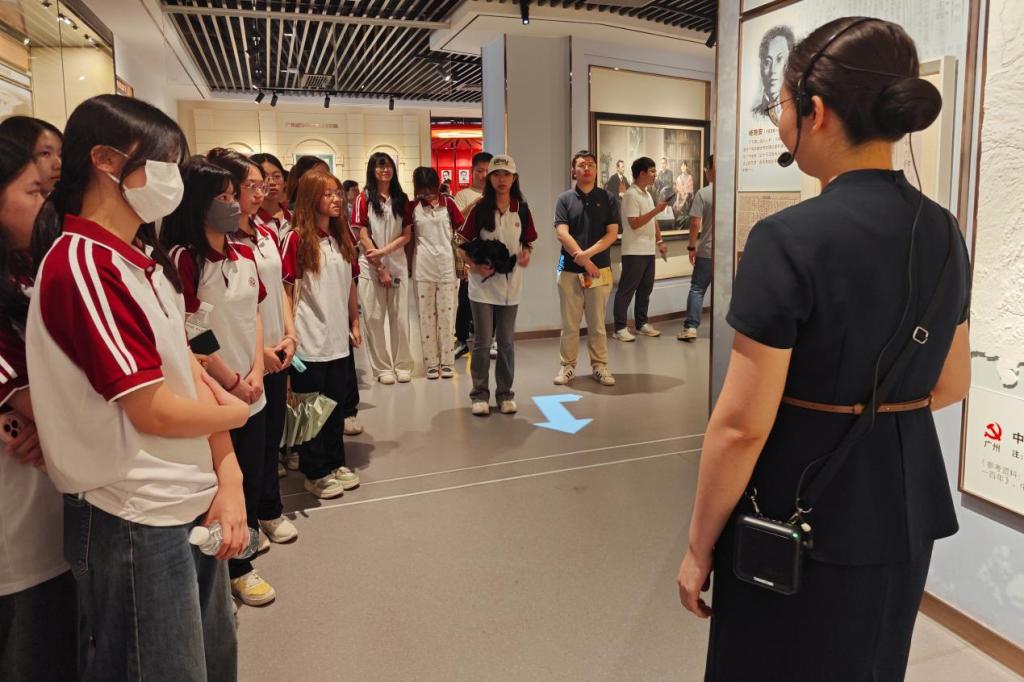上午,师生们走进广东省博物馆。馆内丰富的文物与史料,宛如一本本生动的历史教材。同学们穿梭在各个展厅之间,仿佛在历史的长河中畅游。周剑铭老师巧妙地发布了两个“隐藏任务”,让同学们带着问题去探索、去发现,激发了同学们的好奇心和积极性。大家纷纷认真观察文物,仔细阅读说明,互相交流讨论,努力完成任务。