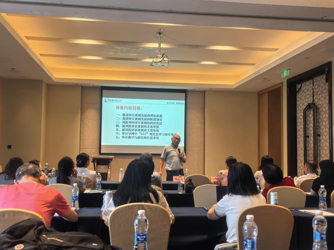 主旨报告环节,中南财经政法大学张龙平教授带来“现代风险导向审计准则的变迁及启示”主题报告。张教授首先回顾审计准则,从账项基础审计到制度基础审计,再到风险导向审计的发展历程,强调了风险评估在现代审计中的核心地位。他详细解读了新准则的主要变化,包括风险评估程序的细化、风险应对措施的强化,以及对固有风险和控制风险的深入分析。