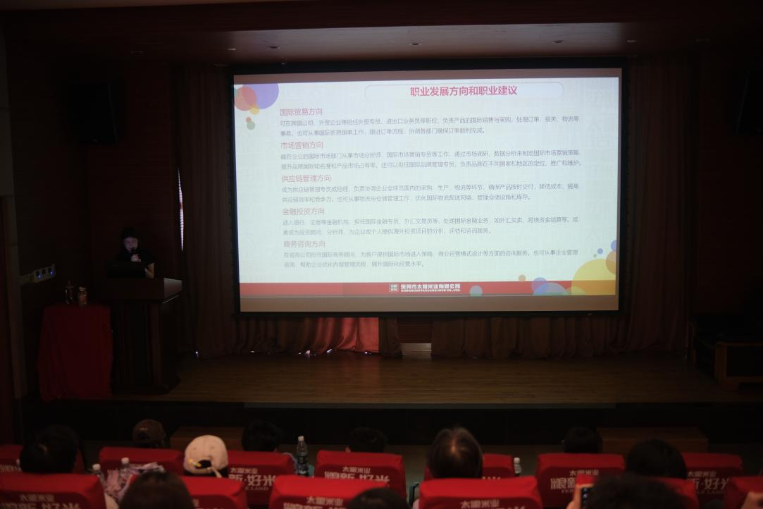活动伊始,粮芯科技有限公司的行业精英为同学们带来了一场干货满满的知识讲座。工作人员从国际贸易政策变化切入,详细讲解了进出口业务的操作流程、风险防控要点以及新兴市场拓展策略。生动剖析了跨境电商运营、海关申报等关键环节,让晦涩的专业知识变得通俗易懂。同时,工作人员还通过分享企业实际运营中遇到的案例,深入剖析了国际贸易中可能面临的风险,如汇率波动、贸易壁垒、信用风险等,并提出了相应的应对策略。同学们全神贯注,认真记录,积极互动,现场学习氛围浓厚。