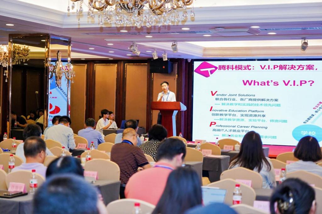广州腾科网络技术有限公司产教融合事业部高级总监吴嘉诚先生推出“VIP虚拟学习工厂”解决方案:通过数字孪生技术复刻华为生产线,学生可远程操控真实工业机器人完成实训,目前已在12所高职院校部署。