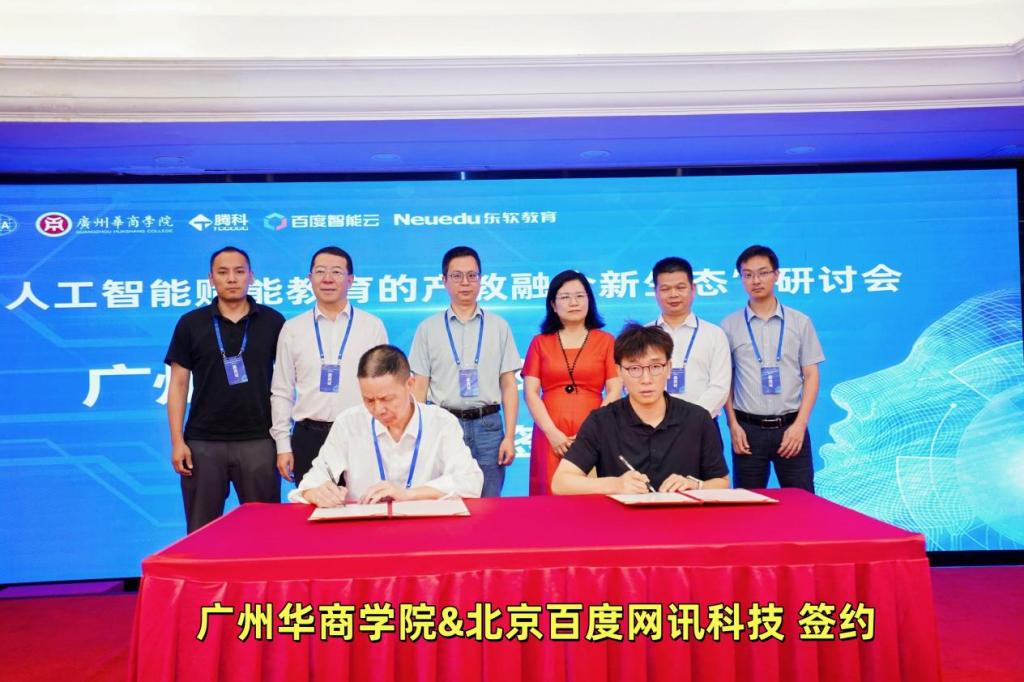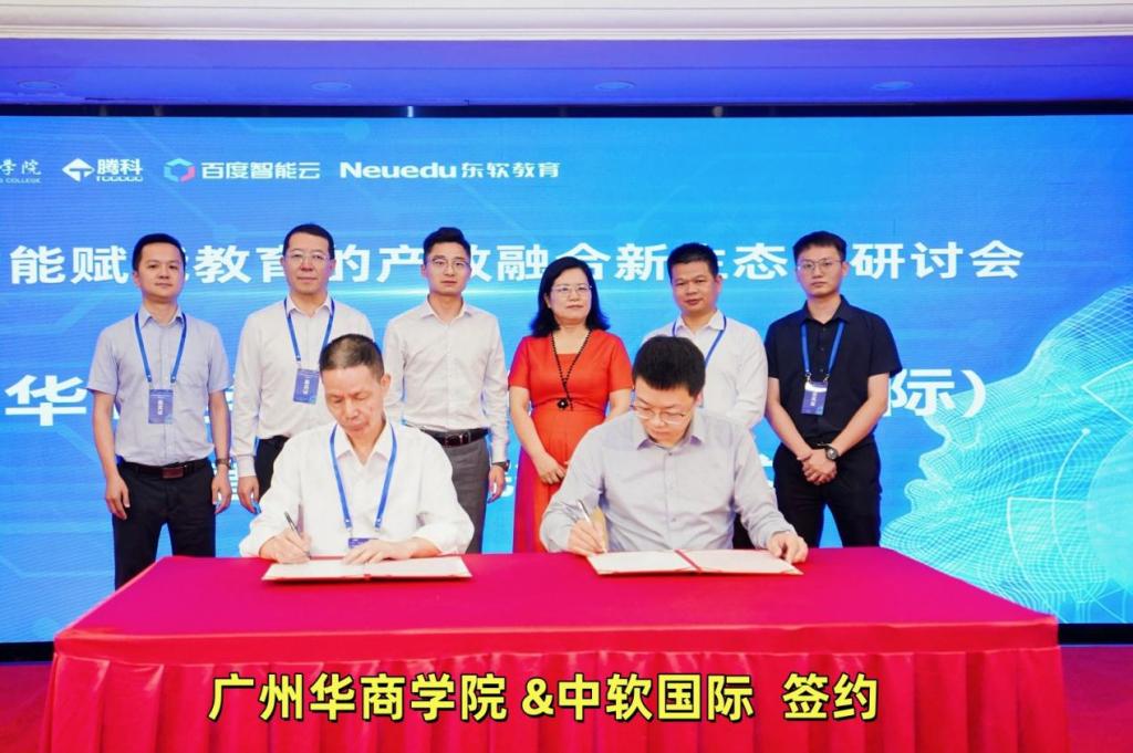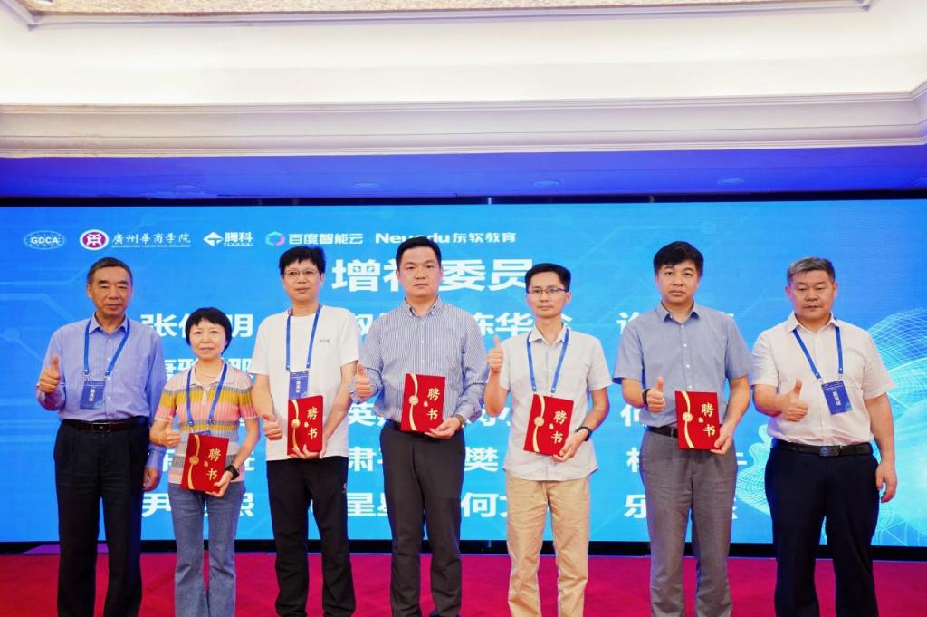 开幕式上还举行了广东省计算机学会民办教育工作委员会新增委员证书颁发仪式,形成覆盖“教育产业科研”的全链条智库网络。同时举行了华商学院与百度、中软国际共建“人工智能与大数据省级现代产业学院”的签约仪式,华商学院与科技巨头达成两项战略合作:携手百度共建省级现代产业学院,百度将投入AI开发平台及企业实战项目等资源;同时联合华为(中软国际)共同开发“鸿蒙+AI”课程体系,聚焦智能硬件开发与端侧大模型部署领域,打造特色专业群。这两项签约标志着产教融合从资源协作迈向深度生态共建的新阶段。