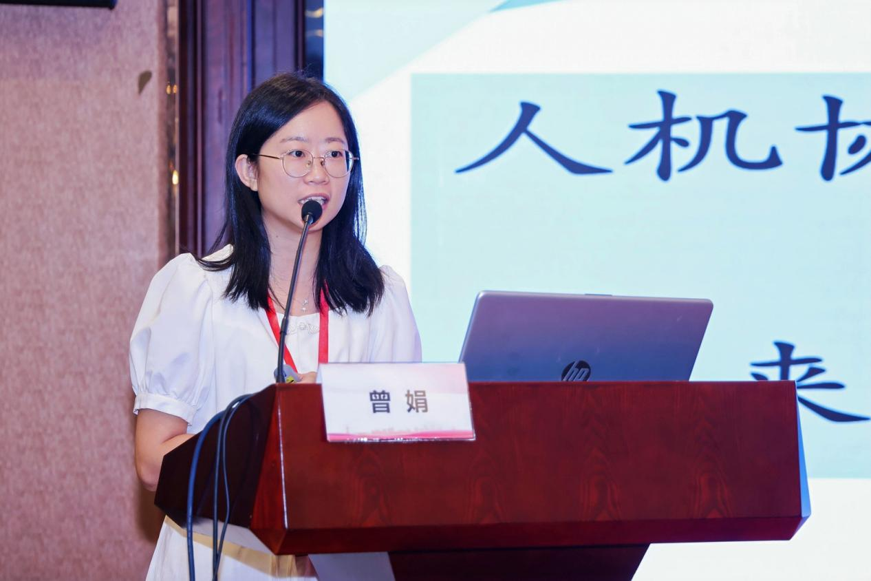 (曾娟副教授作题为“人机协作命制读后续写试题的决策过程研究:来自新手命题员的证据”的专题发言)