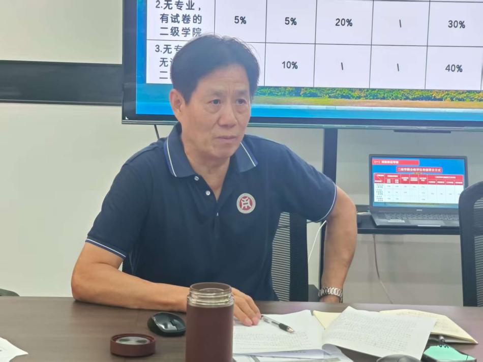 王金道院长对会议进行总结,表彰了期末试卷检查中表现优秀的教师,肯定各部门在教学管理中的扎实成效,强调要加强专业与学科建设,为新专业申报及硕士点建设夯实基础,推动教科办与评建办高效协作。他表示,合格评估是学院发展的“试金石”,必须高度重视,全体教职工要强化责任意识,以严谨态度落实各项工作,筑牢评建根基。