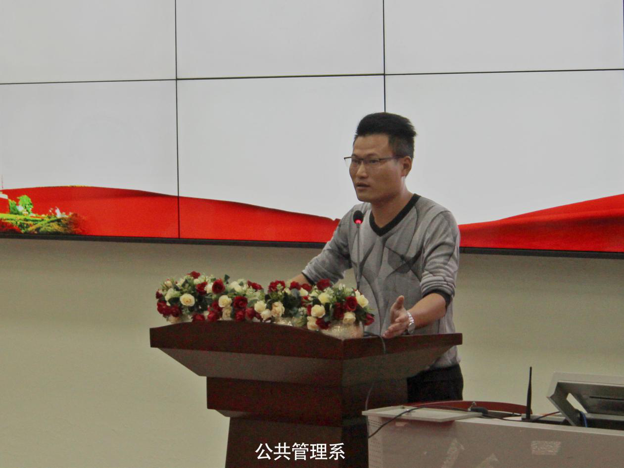 张志强副主任代表公共管理系向在任和即将荣任的学生干部表示祝贺,并对上一届干部对我系的贡献表示感谢。张主任表示,学生干部是学生中的中坚力量,三大组织的新任干部都应严格要求自己,明确自己的职责,充分发挥好纽带桥梁作用,希望我系干部都能以饱满的热情投入到学习和工作当中。
