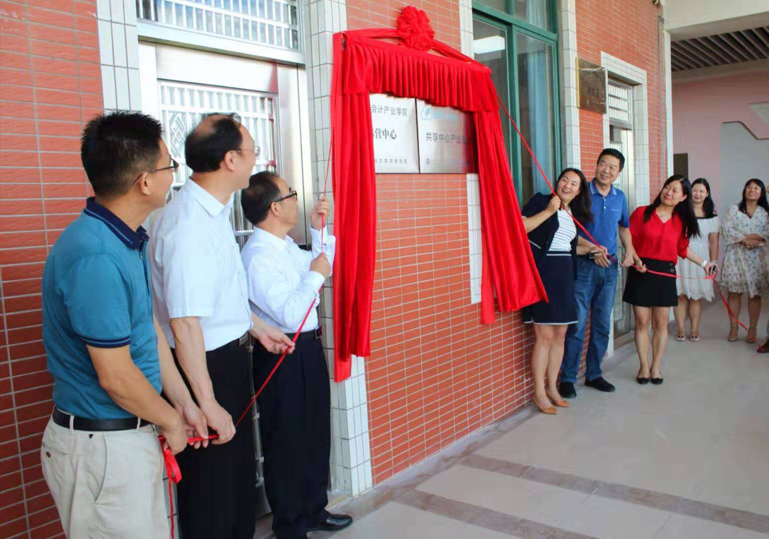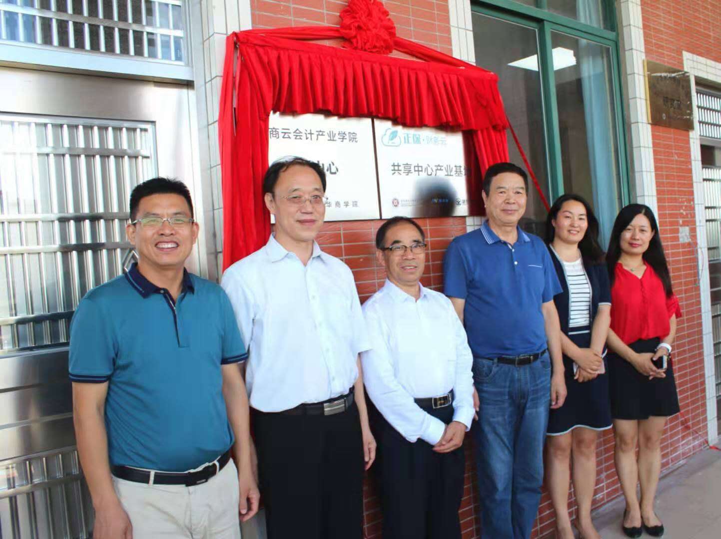 随后,郭银华执行校长、刘永泽教授、陈美华副校长、余家军博士、鲁银花董事长、徐建宁副总裁代表校企合作三方为“华商云会计产业学院运营中心”、“正保财务云财务共享中心产业基地”揭牌,华商云会计产业学院运营中心正式启动。