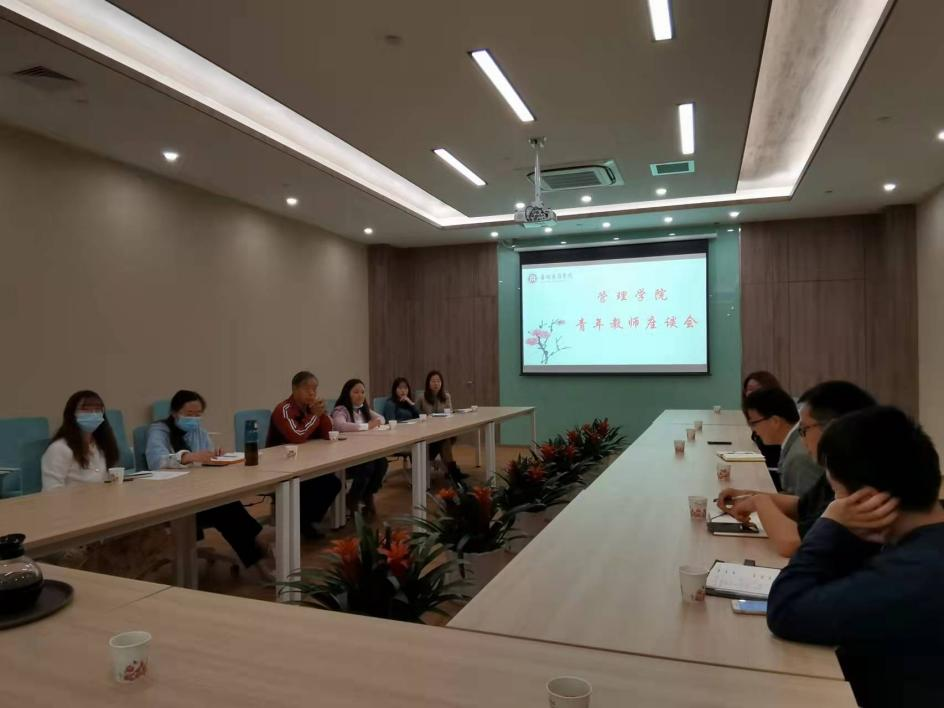 威廉希尔于2022年1月5日下午4点,在教师发展中心互动室5召开青年教师座谈会,来自市场营销、物流管理、旅游管理、工商管理、人力资源管理、行政管理六个专业的青年教师代表及学院办公室潘思媚、冯秀梅老师出席了会议,会议由学院院长李招忠教授主持。